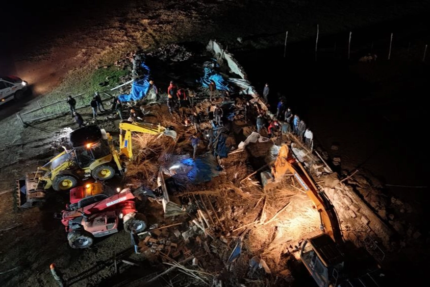 Aksaray’da 3 gündür aralıklarla devam eden şiddetli yağış birçok olumsuzlukları da beraberinde getirirken, sel ve su baskınlarının ardından bugün de içerisinde 750 küçükbaş hayvanın bulunduğu bir mandıra çöktü. Aksaray’ın merkeze bağlı Yeşilova beldesinde yaşanan göçük nedeniyle vatandaşların 112 Acil Çağrı Merkezine haber vermesi üzerine olay yerine İl Afet Acil Durum (AFAD), Aksaray Belediyesi İtfaiye Müdürlüğü ve jandarma ekipleri sevk edildi. Kısa sürede olay yerine intikal eden ekipler iş makinelerinin de desteğiyle kurtarma çalışması başlattı. Mandıra enkazında kurtarma çalışmaları halen devam ederken İl Afet Acil Durum Müdürü Kadir Çelik, “Yeşilova beldemizde aşırı yağışlar sonucu bir ahırın çöktüğü ihbarı üzerine iki ekiple olay yerine geldik. Şu anda telef olan hayvanlar var. Toplam hayvan sayısının 750 olduğu söyleniyor. Kurtarma çalışmaları devam ediyor. Kurtarma operasyonumuz bittikten sonra net sayı belli olacak” dedi. Yeşilova Köseli Mahalle Muhtarı Kemal İlgün ise “Bölgede 3 gündür yağış devam etmekte. Bizim burada mandıramızın çökmesinden dolayı 750’ye yakın küçükbaş hayvanımız göçük altında kaldı. Ağıl altında kalan hayvanlardan ne kadar zayiat verdiğini bilmiyoruz. Zayiat sabah sayımında çıkacak. Allah izin verirse burayı kurtarmaya çalışıyoruz. Yağışlardan dolayı mandıra çöktü” diye konuştu.