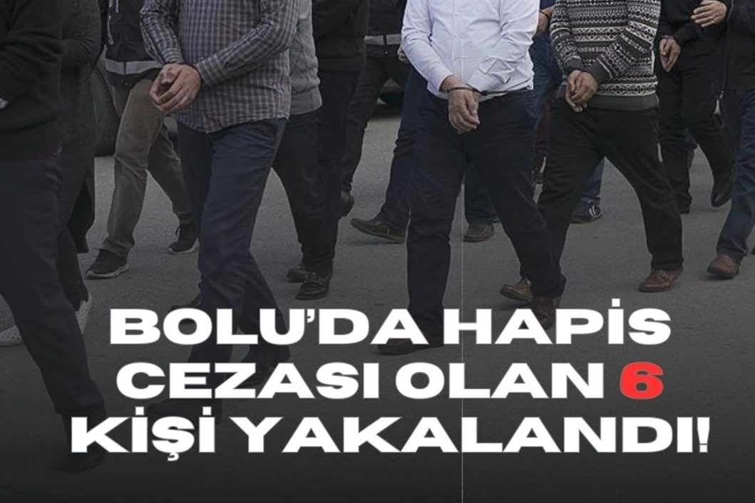 Edinilen bilgiye göre, Bolu İl Emniyet Müdürlüğü ekipleri tarafından kent genelinde aranan şahısların yakalanmasına yönelik çalışma başlatıldı. Ekipler tarafından yapılan çalışmalar neticesinde ‘kasten öldürme’ suçundan 8 yıl 4 ay hapis cezası bulunan N.I, ‘dolandırıcılık’ suçundan 3 yıl 4 ay hapis cezası bulunan E.A, ‘kullanmak için uyuşturucu maddesi satın almak, bulundurmak, kullanmak’ suçundan 3 yıl 1 ay 15 gün hapis cezası bulunan H.T, ‘kasten yaralama’ suçundan 5 yıl 11 ay 7 gün hapis cezası bulunan Ü.O, ‘kasten yaralama’ suçundan 4 yıl 8 ay 7 gün hapis cezası bulunan L.O, ‘kullanmak için uyuşturucu maddesi satın almak, bulundurmak, kullanmak’ suçundan 1 yıl 17 ay hapis cezası ile aranmakta olan E.K. yakalandı. Yakalanan 6 şahıs adliyeye sevk edildi. Şahıslar, adliyedeki işlemlerinin ardından tutuklanarak cezaevine gönderildi.