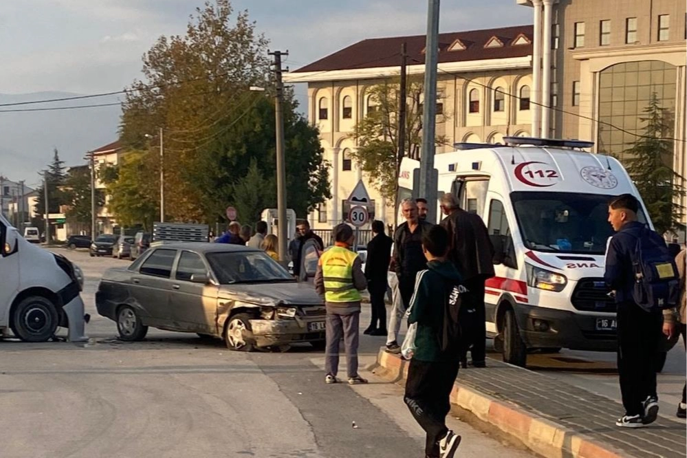 Kaza saat 09.00 sıralarında Akhisar mahallesi 2. Fatih caddesinde meydana geldi. 2. Fatih caddesinde seyir halinde olan Sürücü Selver Ş.(35) yönetimindeki 16 LKS 44 plakalı otomobil ile ara sokaktan çıkan Davut Ö. Yönetimindeki 16 S. 6404 plakalı servis minibüsü çarpıştı. Kaza sonucu otomobilin sürücüsü yaralandı. Yaralı kaza yerine sevk edilen Ambulansla İnegöl Devlet Hastanesine kaldırıldı. Polis kazayla ilgili soruşturma başlattı.