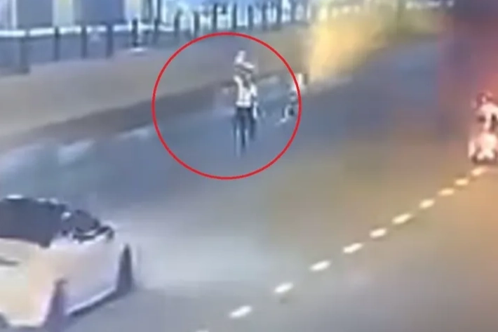Olay, merkez Osmangazi ilçesine meydana geldi. Polis ekipleri, bölgede trafik uygulaması yaparken, kontrol noktasına yaklaşan bir otomobil aniden manevra yaparak dur ihtarına uymadan kaçmaya başladı. Şüpheli aracın kaçtığını fark eden ekipler, telsizle anons ederek çevredeki diğer polis birimlerini bilgilendirdi. Kaçan aracı durdurmak için bir polis memuru ise refleksle yerden aldığı trafik dubasını araca fırlatarak aracın önünü kesmeye çalıştı. O anlar güvenlik kamerasına anbean yansıdı.