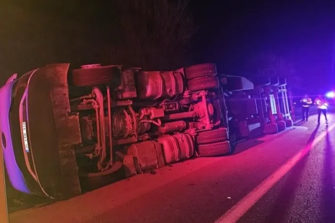 Kaza saat 05.30 sıralarında Bursa-Ankara karayolu üzeri İnegöl'ün Mezit-5 mevkiinde meydana geldi. Bozüyük istikametinden İnegöl'e seyir halinde olan Sürücü Saffet S.(33) yönetimindeki 35 CYB 918 plakalı patates yüklü TIR, sürücüsünün kontrolünden çıkarak yolun kenarına devrildi. Kaza yerine 112 jandarma ve itfaiye arama kurtarma ekipleri sevk edildi. Ekipler kabinde mahsur kalan sürücüyü kurtardılar. Kazayı burnu bile kanamadan atlatan şoför, hastaneyi gitmeyi reddedince Ambulansta tedavi edildi.
