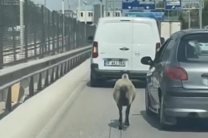 Merkez Nilüfer ilçesi Üçevler Mahallesi İzmir Yolu Caddesi'nde sahibinin elinden kaçan koyun trafiği alt üst etti. Sahipleri koyunu yakalamaya çalıştı ancak akan trafikte yakalamak mümkün olmadı. Bir süre daha koyunu kovalayan sahipleri en sonunda yakalayarak araca bağladı.