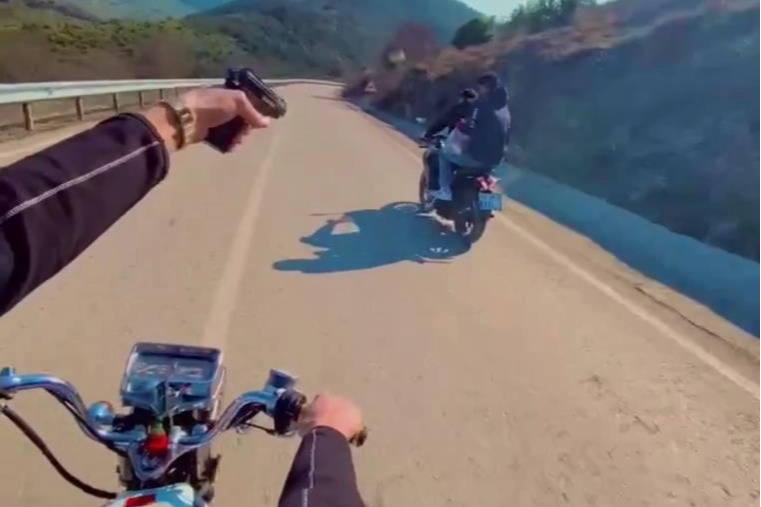 Bursa'da motosikletli gençler eğlencenin dozunu kaçırınca seyir halindeyken birbirlerine kurusıkı tabanca ile ateş ettiler. O anlar cep telefonu kamerasına yansıdı.