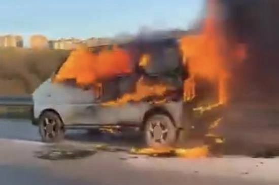 Bursa çevre yolunda seyir halindeki hafif ticari araç alev aldı. Yangın, itfaiye ekiplerinin müdahalesiyle söndürüldü.