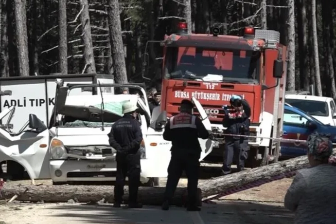 Bursa Uludağ'da ormanda kesilen çam ağacının seyir halindeki kamyonetin üzerine devrilmesi sonucu 1 kişi hayatını kaybetti, 2 kişi yaralandı. Olayla ilgili şüpheli gözaltına alındı.