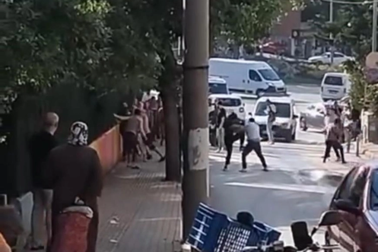 Olay, merkez Yıldırım ilçesi Teleferik Mahallesi'nde meydana geldi. İddiaya göre aralarında alacak verecek meselesi olan iki gurup arasında sözlü tartışma çıktı. Öfkeli taraflar bir anda kavgaya tutuşunca tekmeler, yumruklarda havada uçuştu. Çevredekiler durumu polise bildirirken, bazı vatandaşlar olaya müdahale etmek istedi. Kavga anı kameraya anbean yansırken, görüntüler meydan muharebesini aratmadı.