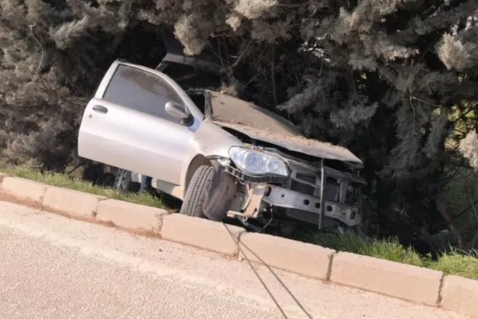 Kaza saat 12.00 sıralarında Alanyurt-İnegöl yolu üzerinde meydana geldi. Alanyurt'tan İnegöl'e seyir halinde olan Aziz D.(57) yönetimindeki 16 ACK 76 plakalı otomobil, iddiaya göre başka bir aracın sıkıştırması sonucu sürücüsünün kontrolünden çıktı. Yoldan çıkan araç alışveriş merkezi bahçesindeki ağaçlara çarparak durabildi.