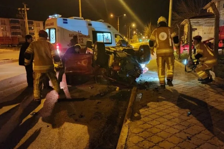 Olay, Bursa'nın Mustafakemalpaşa ilçesinde meydana geldi. Edinilen bilgiye göre, ilçe merkezi istikametine seyir halindeki 16 PU 058 otomobil sürücüsü hızı sebebiyle direksiyon hakimiyetini kaybetti. Aynı istikametteki 16 EHU 57 plakalı kamyonete çarpmasıyla ortalık savaş alanına döndü. Otomobil takla atıp sürüklenirken, kamyonetin savrulmayla çarptığı trafik ışığı da yola devrildi.