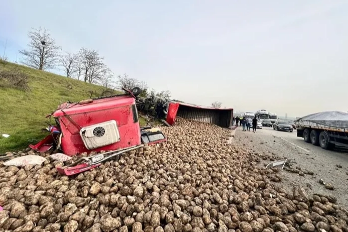 Kaza, saat 11.30 sıralarında İstanbul-İzmir Otobanı, Hal Kavşağı mevkiinde meydana geldi. Edinilen bilgiye göre, şeker pancarı yüklü TIR, sürücüsünün kontrolünden çıkıp önce hafif ticari araca, sonra kamyonete çarptı. Savrulan araçlar refüje girerken, TIR yola devrildi. Kazayı gören çevredekiler yaralıların yardımına koşarken, 112 ekiplerine bilgi verildi. İhbar üzerine olay yerine çok sayıda polis ve sağlık ekibi sevk edildi. Sağlık ekiplerince ilk müdahalesi olay yerinde yapılan 1'i ağır 5 yaralı ambulansla bölgedeki hastanelere sevk edildi. Şeker pancarlarının yola savrulması nedeniyle, trafik ekipleri bölgede başka kazaların yaşanmaması için tedbir aldı.