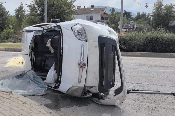 Kaza saat 14.30 sıralarında Kemalpaşa mahallesi Ahmet Türkel Çevre Yolu üzeri Nene Hatun kavşağında meydana geldi. Çevre yolunda seyir halinde olan Nurcan Ş.(21) yönetimindeki 16 KKE 41 plakalı hafif ticari araç, virajda sürücüsünün kontrolünden çıktı. Refüjü aşıp karşı yöne geçerken takla attı. Yan duran araçta sürücü ve yanındaki ablası Nazlıcan Ş.(22) yaralandı. Yaralılar kaza yerine sevk edilen ambulansla İnegöl Devlet Hastanesine kaldırıldı.