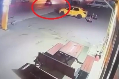 Olay, Yıldırım ilçesi Millet Mahallesi, 2. Vatan Sokak üzerinde meydana geldi. Cadde üzerinde drift atarak ilerleyen bir sürücü, direksiyon hakimiyetini kaybedince kontrolden çıkıp, bir işletme önündeki motosiklete çarptı. Kazanın etkisiyle işletmede bulunan bir çalışan neye uğradığını şaşırıp içeri kaçtı. O anlar panik yaşanan işyerinin güvenlik kamerasına yansırken, trafik magandası olay yerinden hızla uzaklaştı. İhbar üzerine polis o sürücüyü yakalamak için çalışma başlattı.