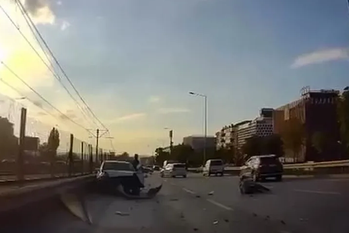 Olay, merkez Nilüfer ilçesi İzmir yolunda meydana geldi. Trafiğin yoğun olduğu anlarda, kayda alınan görüntüler herkesin yüreğini ağzına getirdi. Arkadan gelen aracın durmayacağını fark eden sürücü, kendini sağa doğru attı. O esnada gelen otomobil önüne kattığı araçları, sürüklemeye başladı. Kameralarda 5-6 aracı hurdaya döndüğü kazada, bir motosikletli de ölümden döndü. Araçların altında kalmaktan son anda kurtulan motosikletli, kendini yolun ortasında oturur vaziyette buldu.
