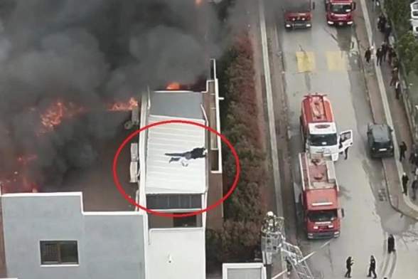 Öte yandan korku dolu anlar dron ile havadan görüntülendi. Görüntülerde çatı katını saran alevler ve gökyüzünü kaplayan yoğun duman dikkat çekti.