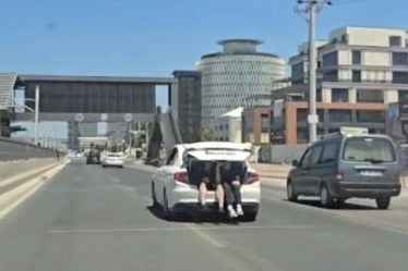 Osmangazi ilçesi İstanbul Yolu üzerinde seyir halindeki bir otomobilde yolcular bagajda taşındı. Bagaj kapısının da açık olduğu görülürken yolcular düşmemek için kapıya tutundu. Kilometrelerce süren tehlikeli yolculuk başka bir sürücünün kamerasına saniye saniye yansıdı.