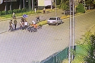 Kaza saat 08.00 sıralarında Mahmudiye Mahallesi Tandoğan Caddesi'nde meydana geldi. Tandoğan Caddesi'nde seyir halinde olan Cemal P. (27) yönetimindeki 16 BBT 011 plakalı motosiklet, aynı yöne giderken sola dönüş yapan Seyit E. (28) idaresindeki 16 AEK 316 plakalı kamyonete yandan çarptı. Çarpmanın etkisiyle devrilen motosikletten düşen sürücü yaralandı. Yaralı, kaza yerine sevk edilen ambulansla İnegöl Devlet Hastanesine kaldırıldı. Kaza anı bir iş yerinin güvenlik kamerasına saniye saniye yansıdı.