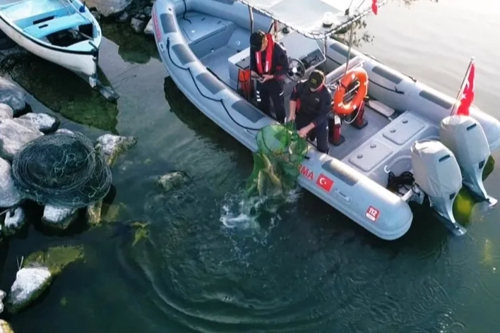 Bursa İl Jandarma Komutanlığı'na bağlı Nilüfer Jandarma Asayiş Bot Komutanlığı, Uluabat Gölü'nde balık çeşitliliğini korumak, ekolojik dengeyi sağlamak ve aranan şahıslara yönelik suda ve karada çalışmalarına devam ediyor. 20 ile 27 Mayıs 2025 tarihleri arasında çalışma yapan ekipler usulsüz su ürünleri avcılığı yapan 3 şahsa toplam 52 bin 380 lira idari para cezası uygulandı. Öte yandan, canlı olarak ele geçen toplam 346 kilogram sazan balığı Uluabat Gölü'ne bırakılarak doğal yaşama geri kazandırıldı.
