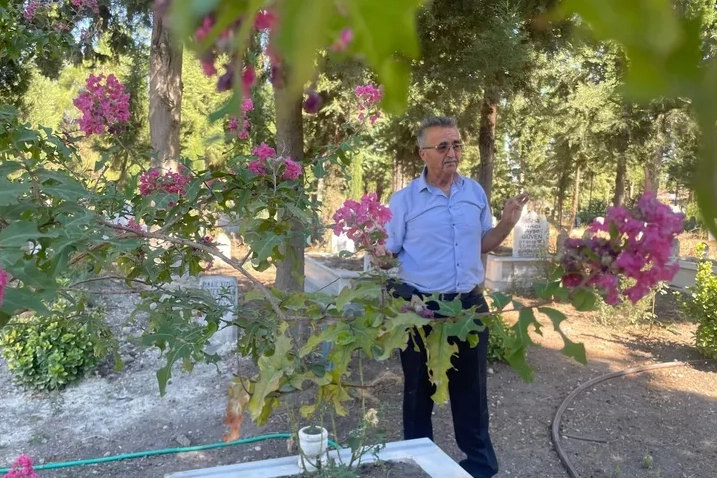 22 dönümü tertemiz yaptı Hüseyin Güven, yaptığı açıklamada, 18 yıl önce lise ikinci sınıftayken 16 yaşındaki oğlunu kaybettikten sonra zamanının büyük bölümünü mezarlıkta geçirdiğini anlattı. Mezarlık alanının yaklaşık 22 dönüm olduğunu aktaran Güven, şöyle konuştu: "Bugüne kadar 1500 fidan, çiçek ve süs bitkileri diktik. Mezarlıktaki tüm bitkiler yeraltından çekilen suyla damla sulamayla sulanıyor. Fidanların tamamının hayatta kalmaları, gelişmeleri, büyümeleri, renkli çiçeklerin açması, budaması, gibi her türlü bakımını haftanın belirli günlerinde yapmaya çalışıyorum. Mezarlıktaki çalışmalarım ben sağ oldukça, sağlığım imkan verdikçe devam edecek." 4 ağaç arasına mezar planı Mezarlığa gelenler su içsin, abdest alsın diye mermerden sebil yaptırdıklarını anlatan Güven, suyun boşa akmadığını fidanların, çiçeklerin sulamasında kullanıldığını söyledi. Kabristan yeni mezar yerlerinin bir planla belirlendiğini dile getiren Güven, "4 ağaç arasına mezar yerleri kazdırıyoruz. Gelişigüzel olmasın düzenli olsun istiyoruz. Bütün temennimiz beklentimiz köyümüz gençlerinin bu konuya ilgi gösterip bizden sonraki süreçte burasının bir park görüntüsü halinde devam etmiş olması." dedi.