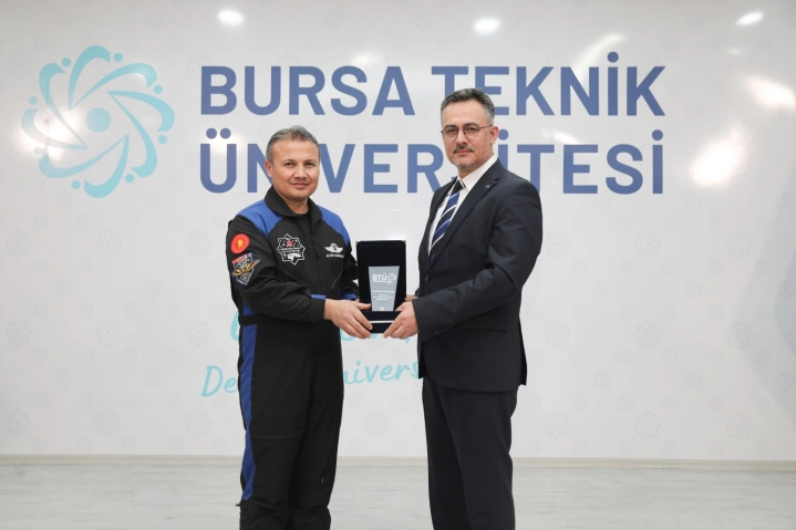 Soru-cevap bölümüyle devam eden BTÜ Konuşmaları, BTÜ Rektörü Prof. Dr. Naci Çağlar’ın ilk Türk astronot Alper Gezeravcı’ya plaket takdiminin ardından toplu fotoğraf çekimiyle son buldu.