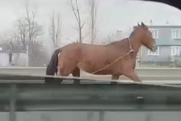 O anlar çevredeki vatandaşlar tarafından cep telefonu kamerasıyla kaydedildi. Görüntülerde atın bir süre yol ortasında dolaştığı, sürücülerin ise hızlarını düşürerek ilerlediği görüldü.