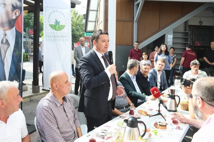 Kemerçeşme, Başaran, Yeşilova, Koğukçınar, Bahar mahallesi, muhtarları ve vatandaşlarla sabah kahvaltısında bir araya gelmekten büyük mutluluk duyduğunu ifade eden Osmangazi Belediye Başkanı Erkan Aydın, “Biz seçildiğimizden günden itibaren muhtarlarımızı arayarak sürekli mahallelerimizi ziyarete geliyoruz. Bu buluşmalarda sorunları yerinde görerek vatandaşlarımızın istek ve taleplerini dinliyoruz. Elimizden geldiği ölçüde imkanlarımızı sefer etmek için Osmangazi’nin 136 mahallesini geziyoruz. Bu zamana kadar mahallelerimizin yarısından fazlasını ziyaret ettik. Bunun içinde köylerde var, vatandaşlarımızın dertlerini, mahallemizin sorunlarını ve muhtarların bize ilettiği konuları, birinci elden görüp kendimiz şahit olarak bunlara çözüm üretme derdindeyiz. 5 yıl dediğiniz 5 yıl gibi geçip gidiyor. Görev süremizin 14-15 ayı bitti, geriye 45 ay kaldı. Vaktin ne kadar değerli ve hızlı geçtiğini iyi biliyoruz. O yüzden az zamanda çok iş yapmak için vatandaşlarımızla bir aradayız” dedi.