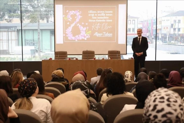 Kadın elinin değdiği her yer gibi İnegöl’ün de belediyenin kadın personellerinin dokunuşlarıyla her geçen gün daha güzel ve yaşanabilir bir hal aldığını kaydeden Taban, “İnegöl adına gösterdiğiniz gayret ve çabalardan dolayı her birinize teşekkür ediyorum. Bizler bir aile gibiyiz. 8 Mart sembolik bir gün, ancak kadınlar bizim için her gün aynı değere sahip. Biliyoruz ki kadın; toplumun en etkili, yönlendirici, birleştirici ve koruyucu unsurudur. Kadın annedir, eştir, evlattır… Dinimizde de Türk geleneklerinde de kadının yeri her zaman en üst mertebedir. Kurumumuzda da kadın personellerimiz bizim kıymetlilerimiz. Bu vesileyle sizlere katkı ve destekleriniz için bir kez daha teşekkür ediyorum. Sizlerin nezdinde şehrimizdeki, ülkemizdeki ve dünyadaki tüm kadınların 8 Mart Dünya Kadınlar Gününü kutluyorum” dedi.