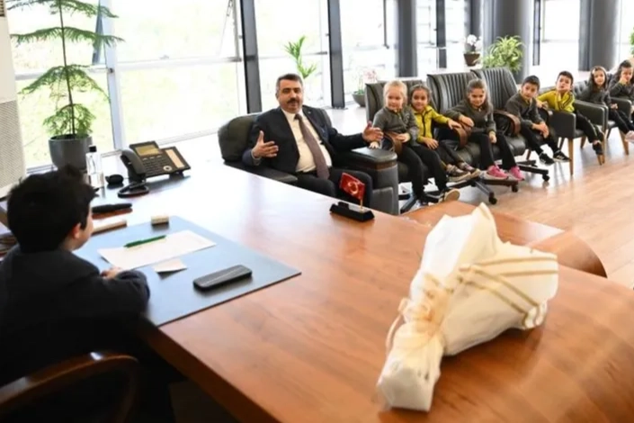 Yıldırım Belediye Başkanı Oktay Yılmaz, Bilsoy Anaokulu’nda eğitim gören öğrencileri makamında ağırladı. 23 Nisan Ulusal Egemenlik ve Çocuk Bayramı etkinlikleri kapsamında düzenlenen ve geleneksel hale gelen, çocukların temsili olarak yönetici koltuğuna oturmaları töreninde, kısa sürede olsa Yıldırım Belediye Başkanlığı koltuğunu emanet alan çocuklar, istek ve temennilerini Başkan Oktay Yılmaz’a ilettiler.