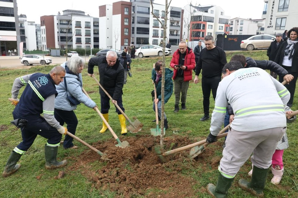Nilüfer Belediye Başkanı Şadi Özdemir’in de katıldığı çalışmada, fidanlar mahalle sakinleriyle birlikte toprakla buluşturuldu. Başkan Özdemir, küreği eline alarak mahalle halkıyla birlikte dikim çalışmasına katıldı.