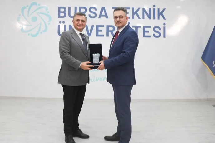 Otomotiv sektöründe yaşanan dönüşüm, yapay zekânın etkileri, sektörün dünyadaki gelişmelerine değinen Baran Çelik, öğrencilerden gelen soruları da cevapladı. BTÜ Rektörü Prof. Dr. Naci Çağlar’ın, Beyçelik Holding CEO’su Baran Çelik’e plaket takdimi ile devam eden program, toplu fotoğraf çekimiyle son buldu.