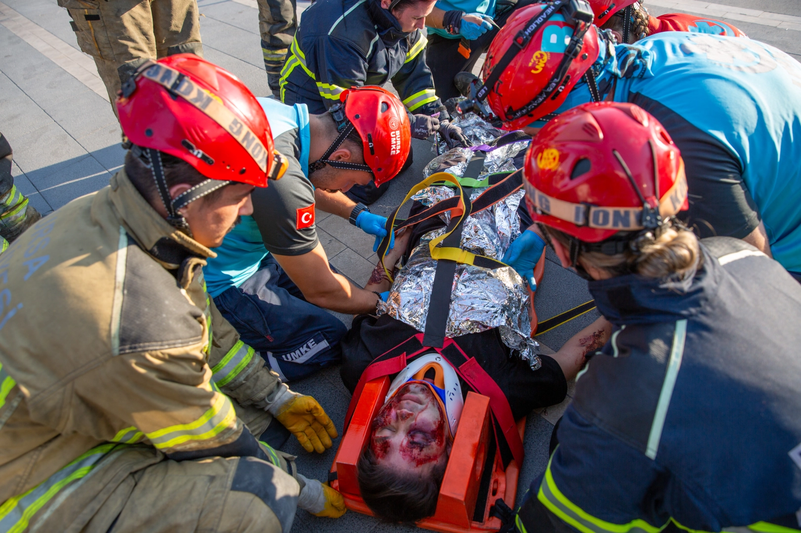 Bursa Büyükşehir Belediyesi’nin ana hizmetlerinden birisini yürüten ve dışa yansıyan yüzü olan İtfaiye Daire Başkanlığı, olaylara kısa sürede müdahale eden uzman ekipleriyle vatandaşa güven veriyor. İtfaiye Teşkilatı’nın 310. kuruluş yıldönümü ve İtfaiye Haftası kapsamında Büyükşehir Belediyesi İtfaiye ekipleri tarafından Kent Meydanı’nda yaralı kurtarma tatbikatı gerçekleştirildi. UMKE ekiplerinin de yer aldığı tatbikatta, senaryo gereği seyir halindeki iki elektrikli otomobil çarpıştı. Alınan ihbar üzerine kısa sürede itfaiye ve UMKE ekipleri olay yerine intikal etti. Kaza sonrası aracın altında kalan ve araçların içerisinde sıkışan yaralılar, sağlık ekipleri tarafından durumları kontrol edildikten sonra itfaiye ekipleri tarafından kurtarıldı. Otomobillerin elektrikli olması sebebiyle büyük bir titizlikle müdahale eden itfaiye ekipleri, yaralıları kurtardıktan sonra sağlık ekiplerine teslim etti. Aksiyon filmlerini aratmayan görüntülerin ortaya çıktığı tatbikat, çevredeki vatandaşlar tarafından büyük ilgiyle takip edildi. Yaralıların araçlardan başarıyla kurtarılmasını izleyen vatandaşlar, itfaiye ve UMKE ekiplerini alkışlarla tebrik etti. Tatbikat sonrası konuşan Büyükşehir Belediyesi İtfaiye Daire Başkanı Canalp Berkdemir, elektrikli otomobillerin sayısının git gide artığını, herhangi bir kazada vatandaşların bilinçsiz bir şekilde müdahalede bulunmaması gerektiğini söyledi. Elektrikli araçların alev alma ve patlama riskinin diğer araçlara nazaran daha fazla olduğunu ifade eden Berkdemir, “Bu tatbikatta, elektrikli otomobil kullananların olası bir kaza sonrasında neler yapması gerektiğini anlattık. İnsanların kaza sonrasında elektrikli araçlara dokunmadan olay yerinden ayrılmasına işaret ettik. Kurtarma işlemi profesyoneller tarafından yapılmalıdır. Kurtarma esnasında araçlarda yüksek akım söz konusudur. Bu akıma vatandaşların müdahale etmesi halinde elektriğe kapılma riski vardır. Bu da yeni bir kazaya sebebiyet verir” dedi.