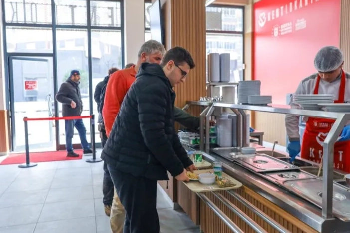 Sosyal belediyecilik anlayışıyla insan odaklı hizmetlerini sürdüren Bursa Büyükşehir Belediyesi; Merinos Parkı, Vatan ve Yiğitler mahallelerindeki kent lokantalarıyla vatandaşların uygun fiyata ve sağlıklı yemeğe ulaşabilmesini sağlıyor. 350 bin kişi faydalandı, 8 binden fazla askıda yemek bırakıldı Hijyenik şartlarda hazırlanmış, besleyici ve lezzetli 4 kap yemek, yanında ekmeği ve suyu ile birlikte vatandaşlara 80 TL’den sunulurken, kent lokantaları açıldıkları ilk günden itibaren Bursalılardan yoğun ilgi görüyor. Halkın en temel ihtiyaçlarından birine verilen net bir yanıt olan kent lokantalarında gönül rahatlığıyla yemeklerini yiyen vatandaşlar; temiz, dengeli ve besleyici yemeklerden her gün yararlanabiliyor. Açıldıkları günden itibaren kent lokantalarından yaklaşık 350 bin kişi faydalandı. Paylaşma ve dayanışma kültürünün önemli bir parçası olarak ise 8.000’den fazla askıda yemek bırakıldı. Bütçesini zorlamadan ve gönül rahatlığıyla yemeklerini yiyen vatandaşlar, kent lokantası uygulamasından büyük memnuniyet duyduklarını dile getirdi. Bursa’nın birçok noktasında kent lokantası açılması gerektiğini vurgulayan vatandaşlar, uygun fiyata lezzetli ve kaliteli yemek yeme imkanı sunan Bursa Büyükşehir Belediye Başkanı Mustafa Bozbey’e teşekkür etti.