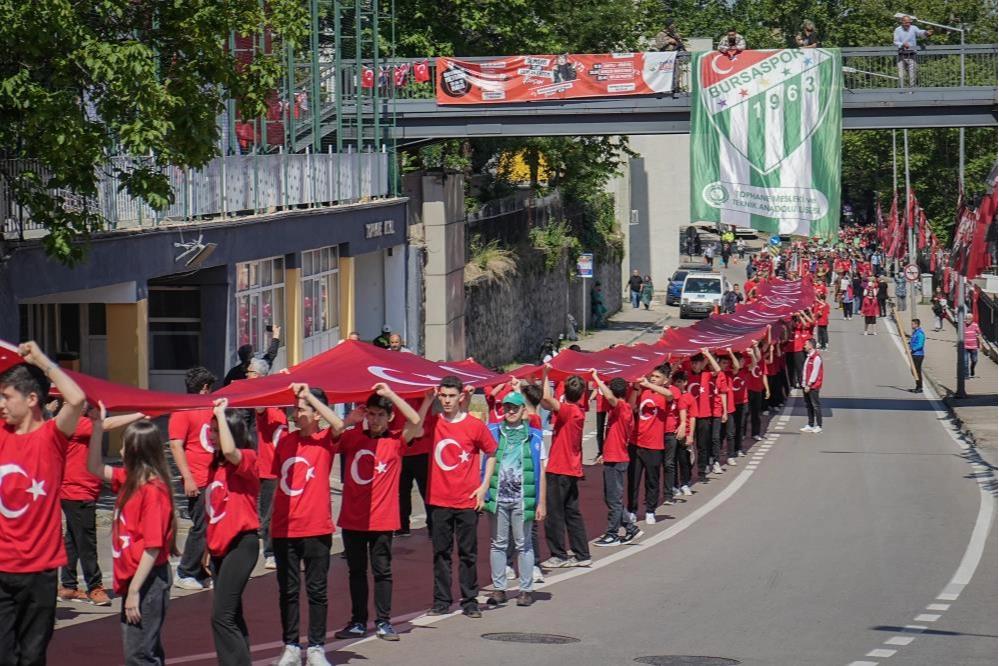 Türkiye Cumhuriyeti'nin tarihindeki dönüm noktalarından biri olan 19 Mayıs 1919'un 106. yıl dönümünün kutlamaları, Bursa'da devam ediyor. Eski Memleket Hastanesi önünden bando eşliğinde başlayan yürüyüş Tarihi Çarşı ve Hanlar Bölgesi Çarşıbaşı Meydanı'na sona erdi. Çarşıbaşı Meydanı'nda düzenlenen törene, Bursa Valisi Erol Ayyıldız, Bursa Cumhuriyet Başsavcısı Ramazan Solmaz, İl Emniyet Müdürü Sabit Akın Zaimoğlu, Bursa Büyükşehir Belediye Başkanı Mustafa Bozbey, AK Parti Bursa İl Başkanı Davut Gürkan, CHP Bursa İl Başkanı Nihat Yeşiltaş, Gençlik ve Spor Bursa İl Müdürü Rahmi Aksoy, Yıldırım Belediye Başkanı Oktay Yılmaz, siyasi parti temsilcileri ve vatandaşlar katıldı. Gençlerin kılıç kalkan gösterisi, halk oyunları, karate ve güreş gösterileri etkinliğe renk kattı.