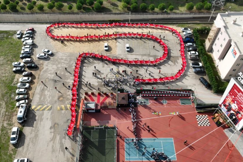 Cumhuriyet Bayramı kutlamaları çerçevesinde Bursa'nın Nilüfer ilçesinde organize edilen bayrak yürüyüşü, ilkokul, ortaokul ve lise öğrencilerinin katılımıyla coşkulu bir şekilde gerçekleşti. 500 metre uzunluğunda bayrak öğrenciler tarafından bir caddeyi boydan boya geçecek şekilde açıldı. Okuldan kortej eşliğinde çıkan öğrenciler Ahmet Taner Kışlalı ve Özlüce Bulvarını ellerinde taşıdıkları 500 metrelik bayrak ile birleştirdi. Yaklaşık 5 metro treni uzunluğundaki Türk bayrağı BURSARAY istasyonu önünden geçerken hareket halindeki tren ile yan yana gelince o anlarda drone ile havadan görüntülendi. Büyük gökdelenlerin arasından görüntülenen 500 metrelik Türk bayrağı renkli görüntülerin oluşmasına sebep oldu.