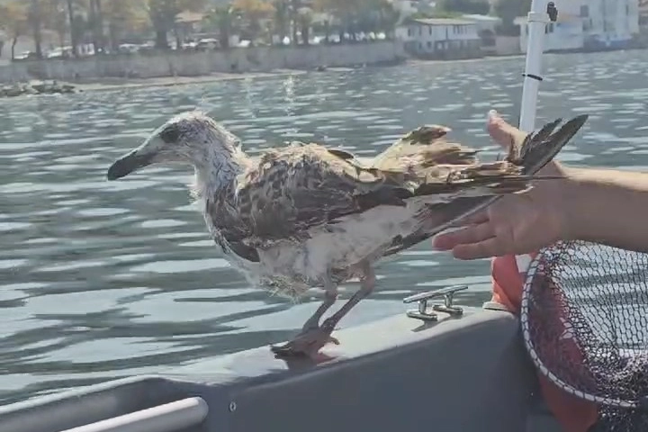 Gemlik ilçesi Kurşunlu Mahallesi açıklarında denizin üzerinde martı olduğunu gören vatandaşlar, harekete geçti. Tekne ile martının yanına giden vatandaşlar, misinaya dolandığını ve ölmek üzere olduğunu gördü. Hemen denizden alınan martı, misinadan kurtarılarak doğal yaşamına bırakıldı.