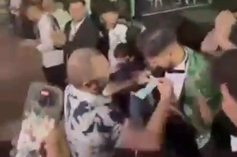 Salonda kısa süreli şaşkınlık yaşanırken, davetliler o anlar cep telefonlarıyla görüntüledi.