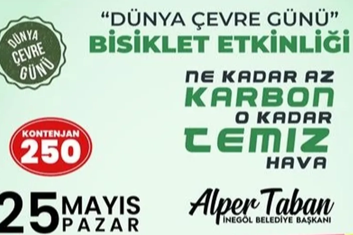 İnegöl Belediyesi Dünya Çevre Günü etkinlikleri kapsamında “Ne kadar az karbon, o kadar temiz hava” sloganıyla bisiklet turu düzenliyor. Etkinlik kapsamında yapılacak çekilişle 3 kişiye bisiklet, 5 kişiye bisiklet aksesuarı ve 5 kişiye de bisiklet tamir kiti hediye edilecek.
