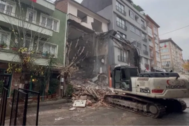 İlginç yıkım, Bursa'nın Osmangazi ilçesi Sakarya Mahallesi 10. Yavuz sokakta gerçekleşti. Eski binanın yıkılarak yerine yeni bina yapımı için hareke geçen yüklenici firma, iş makineleriyle sokağa geldi. Binanın yıkımı için harekete geçen iş makinesi, çatı kısmından aşağı doğru binayı yıkacağına zeminden işe başladı. Binan ilk iki katı yıkı yıkılırken, 3'üncü ve 4'üncü katı yandaki binaların arasında asılı kaldı.