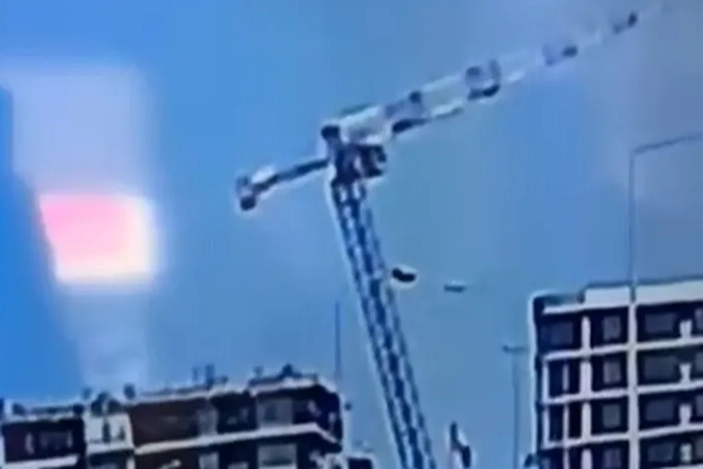 Yol üzerinde park halinde olan lüks otomobil ise üzerine devrilen vinç sebebiyle hurda yığınına döndü. Devrilme anı ise, başka bir iş yerinin güvenlik kameralarına yansıdı. Dönüş yaptığı esnada, gürültüyle devrilen vinç ilk önce inşaat halindeki binaya daha sonra ise yola savruldu.