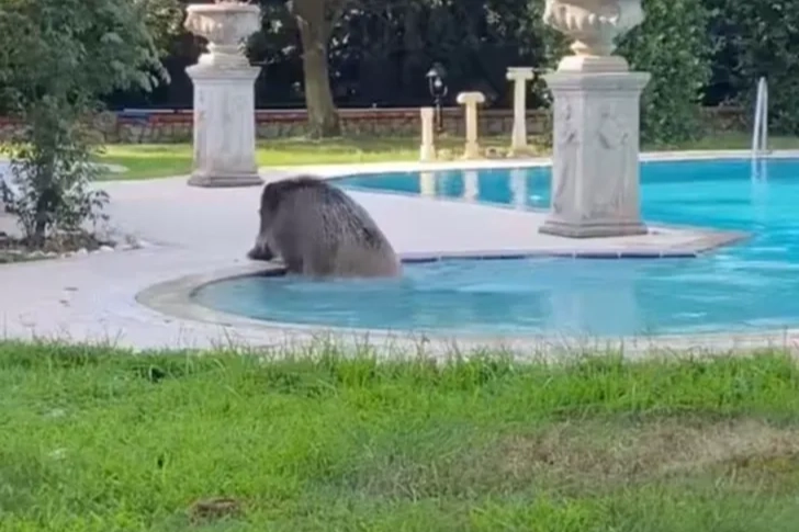 Olay, Nilüfer ilçesi Bademli Mahallesi'nde meydana geldi. Tatil yapmak isteyen bir grup arkadaş lüks villa kiraladı. Kiraladıkları villada havuza girmek için hazırlanan arkadaş grubu bahçede domuz ile karşılaştı. Domuz, insanları görünce kaçmak isterken havuza düştü. Bir süre serinleyen domuz kaçarak uzaklaştı. O anlar, saniye saniye amatör kamera ile kaydedildi.