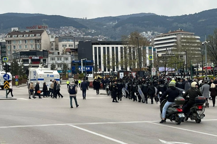 Eylem sırasında toplanan grup sık sık "Bursa'nın başkanı Mustafa Bozbey" sloganları atarak destek gösterisinde bulundu.