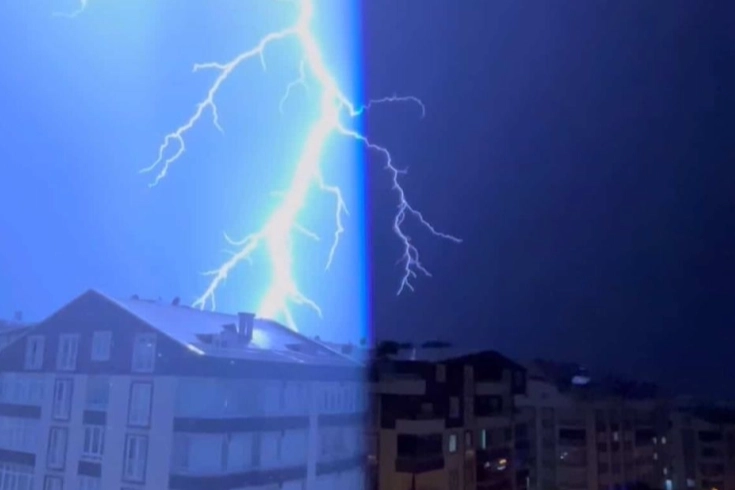 Bursa’da akşam saatlerinde atıştıran yağmur damlaları gecenin karanlığı ile birlikte yerini gök gürültüsüne bıraktı. Gökyüzünden neredeyse yere kadar uzanan şimşek gecenin karanlığını aydınlığa çevirdi.