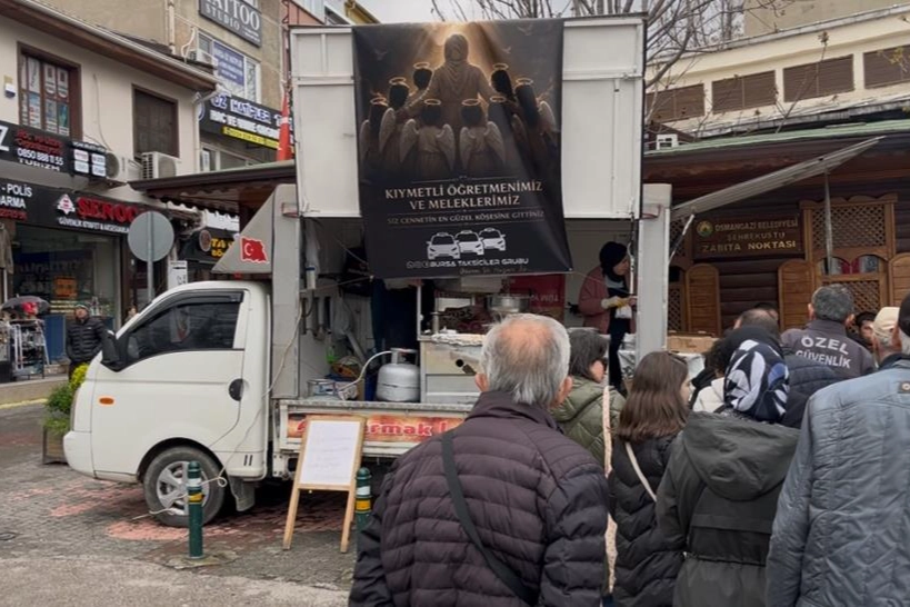 Bursa Taksiciler Grubu, Kahramanmaraş’ta düzenlenen okul saldırısında hayatını kaybeden matematik öğretmeni Ayla Kara ve 8 öğrenci için Şehreküstü Meydanı’nda lokma hayrı gerçekleştirdi.