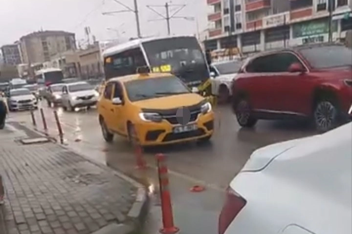 Bursa'da geri geri ilerleyen taksi sürücüsü tehlike saçtı o anlar cep telefonu kamerasıyla kaydedildi.