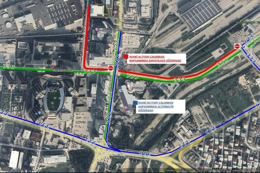 BUSKİ Genel Müdürlüğü tarafından yapılan açıklamada şu cümlelere yer verildi; "BUSKİ Genel Müdürlüğü Kanalizasyon Dairesi Başkanlığı tarafından yapılacak çalışmalar çerçevesinde, Odunluk Mahallesi, Akademi Caddesi 18 Temmuz 2025 - 14 Ağustos 2025 tarihleri arasında trafik akışına kapatılarak, mevcut trafik akışı ekte belirtilen krokideki alternatif güzergahlardan sağlanacaktır. Çalışmalar süresince sürücülerin trafik işaret ve işaretçilerine uymaları gerekmektedir."