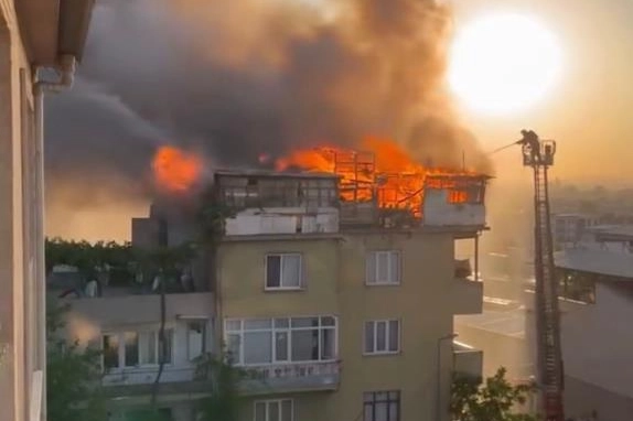 Bursa'da 5 katlı binanın çatı katı alevlere teslim oldu. Yangında, 1 kişi hayatını kaybetti.