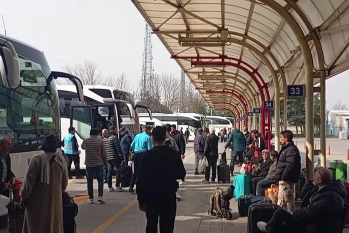 Terminal çevresinde de yoğunluk dikkat çekti. Hem yolcu otobüsleri hem de yakınlarını uğurlamak için gelen vatandaşların oluşturduğu araç trafiği nedeniyle bölgede denetimler artırıldı. Ekipler, trafik akışını kontrollü şekilde sağlarken sürücülere kurallara uymaları yönünde uyarılarda bulundu.