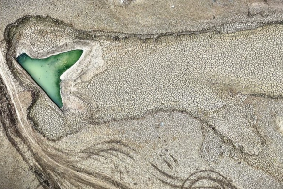 Dronla kaydedilen görüntülerde, iki baraj göletinde de suyun büyük oranda çekildiği, bazı noktalarda çekilmenin 300 metreyi bulduğu ve zeminde derin çatlakların oluştuğu görülüyor.