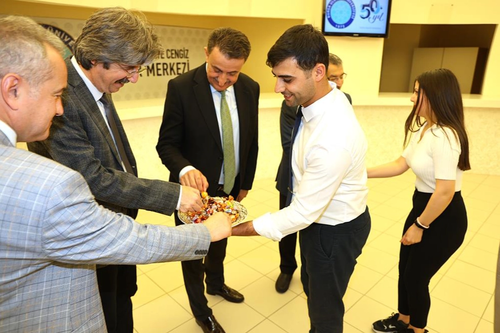 Prof. Dr. Mete Cengiz Kültür Merkezi’ndeki sergi alanında düzenlenen bayramlaşma töreninde Rektör Prof.Dr. Ferudun Yılmaz, Rektör Yardımcıları Prof. Dr. Cafer Çiftci, Prof. Dr. İrfan Kırıştıoğlu ve Prof. Dr. Zekeriyya Arı, Genel Sekreter Mehmet Aydemir ve Genel Sekreter Yardımcıları Necip Al ile Tarık Kelleci hazır bulundu. Tören öncesinde kısa bir selamlama konuşması gerçekleştiren Rektör Yılmaz, İslam âleminin Kurban Bayramı’nı tebrik ederek, birlik ve beraberlik içerisinde nice mutlu bayramlar temennisinde bulundu. "Hep birlikte çalışmaya devam edeceğiz" Prof. Dr. Ferudun Yılmaz, "Bahar dönemi yoğun bir süreçten geçtik. En son geçen hafta YÖKAK akreditasyon ziyareti yapıldı. Orada hem idari hem de akademik personelimizin çok içten ve azimli gayretlerini gördük. Güzel bir sonuç alacağımızı ümit ediyoruz. Bayramlar dargınların barıştığı, sevinç ve mutluluk günleridir. Böylesi günlerde yitirdiklerimizi ve ayrı kaldıklarımızı da hatırlıyoruz. Gidebiliyorsak memleketlerimizi ziyaret ediyoruz. Kurban Bayramı hepimiz için ayrı bir öneme sahip. Yardımlaşmanın, dayanışmanın en güzel örneklerinden birisidir. Bir yandan da dünyada açlıkla mücadele eden, savaşta olan milletlerin olduğunu hatırlamamız gerekiyor. İnşallah yakın zamanda hepsi özgürlüklerine ve ekonomik bağımsızlıklarına kavuşurlar. Bayramın hepimize neşe, sağlık ve huzur getirmesini diliyoruz" ifadelerini kullandı. Konuşmaların ardından üniversite yöneticileri törene katılan tüm personelle tek tek bayramlaştı.