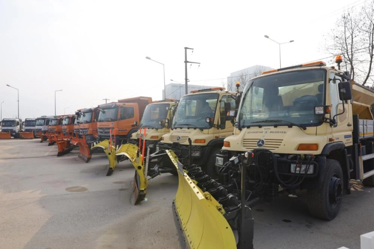 Büyükşehir Belediyesi Ulaşım Dairesi Başkanlığı ekipleri, etkili olması beklenen kar yağışı ve soğuk hava dalgasına karşı kent merkezinde ve 17 ilçede gerekli tüm tedbirlerini aldı. Karla mücadelede iki vardiyada toplam 101 ekip ve toplam 535 personel görev yapacak. Şehir genelinde 33 adet tuz serici ve kar bıçaklı kamyon, 27 adet kürekli tuzlama kamyonu, 23 greyder, 1 ekskavatör, 2 dozer, 1 vinç, 32 pick up, 11 loder, 38 JCB olmak üzere toplam 169 kamyon ve iş makinesiyle karla mücadele çalışmaları yürütülecek. Ekip ve ekipman anlamında tüm tedbirleri alan Büyükşehir Belediyesi, 22 bin 500 ton tuz ve 30 ton solüsyon rezerviyle Bursalıların ulaşımda aksama yaşamaması için 94 ana güzergahı kontrol altında tutacak.