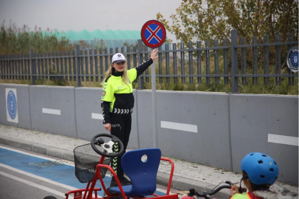 Bursa'da 4 yıl önce çocuklar için tasarlanan parkur, ayda 5 bin öğrenciye ev sahipliği yapıyor. 7-13 yaş arası öğrenciler, öğretmenlerinin Milli Eğitim Bakanlığı'ndan aldığı onay sonrası, Trafik Şube Müdürlüğünce kendileri için hazırlanan parkurda trafik eğitimi alıyor. Kurulan dersliklerde polis ekiplerinden trafik kurallarını öğrenen minikler, daha sonra piste çıkarak direksiyon başına geçiyor. Polis ekipleri eşliğinde önce, karşıya geçmeyi daha sonra üst geçit kullanmak gibi, birçok hayati bilgiyi hızla miniklerin eğlenceli eğitimi bununla da yetinmiyor. Son olarak kendileri için tasarlanan özel bisikletlerle polis eşliğinde trafiğe çıkan öğrenciler, kırmızı ışık, geçiş önceliği, hız kuralları gibi bilgileri de öğreniyor. Verilen eğitimlerle minik sürücüler, kendi can güvenliklerini sağlayan önemli bilgileri kavrıyor.