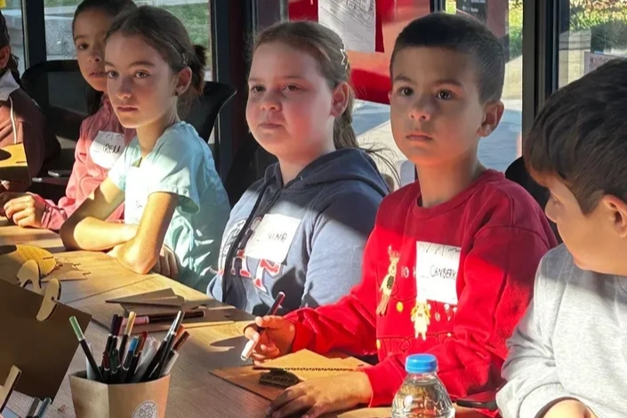 İkinci atölyeye katılan çocuklar ise Bursalı ressam Hale Asaf’ın yaşamını ve eserlerini keşfetti. “Hale Asaf’tan İlhamla Bursa Manzaraları” başlıklı atölyede çocuklar, sanatçının renk, biçim ve kübik yaklaşımını inceledikten sonra günümüz Bursa’sından ilham alarak kendi baskı çalışmalarını ortaya koydu. Renkli kağıtlar ve çeşitli baskı teknikleriyle üretilen kübik kompozisyonlarda çocuklar özgün bakış açılarını yansıttılar.